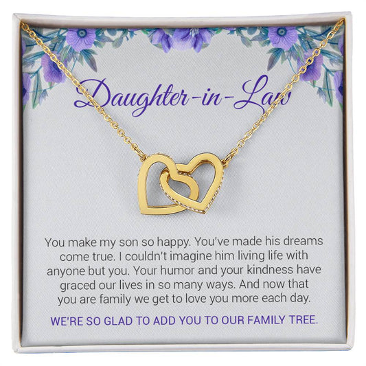 To My Daughter In Law | We're So Glad To Add You To Our Family Tree - Interlocking Hearts necklace