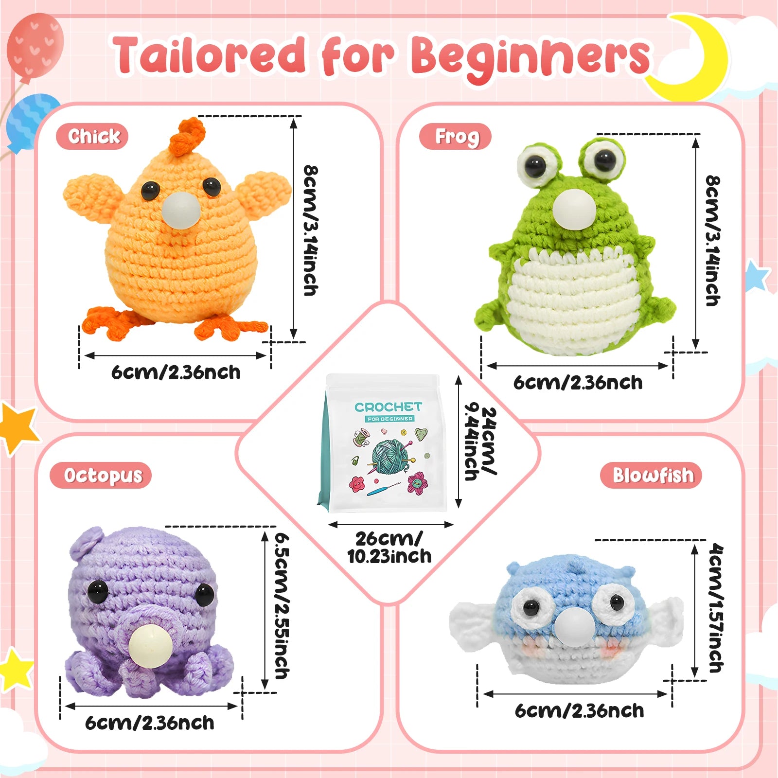 Channel your inner artist as you mix and match the provided colorful wool. With our DIY Crochet Kit, youre not just passing time—youre creating keepsakes. Complete with scissors, tape measure, and more, you can dive into projects immediately and revel in the satisfaction of a job well done.