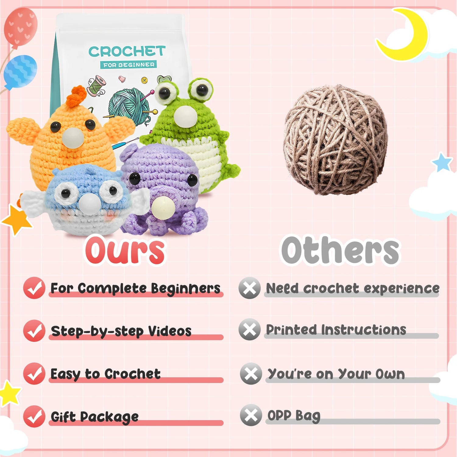 ★★★★★"Picked this up on whim cuz I needed a new hobby. Didnt expect to fall in love with crochet! This kit makes it easy and the quality is great. Im already gifting my creations to friends and fam. The filled cottons perfect for amigurumi too!"